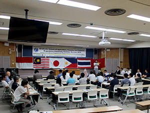 Approximately 35 teaching staffs and master course students including 14 students from five member schools such as Sam Ratulangi University, Indonesia, Universiti Malaysia Terengganu, Malaysia, University of the Philippines, Visayas, Philippines, Kasetsart University, Thailand and Nha Trang University, Vietnam attended at the opening ceremony. Professor Yoshiaki Sakuma, Dean of Faculty of Fisheries, expressed his welcome greeting and celebrated that the first activity of ILP has successfully started. Representatives of each school student also presented their greetings and future perspectives.