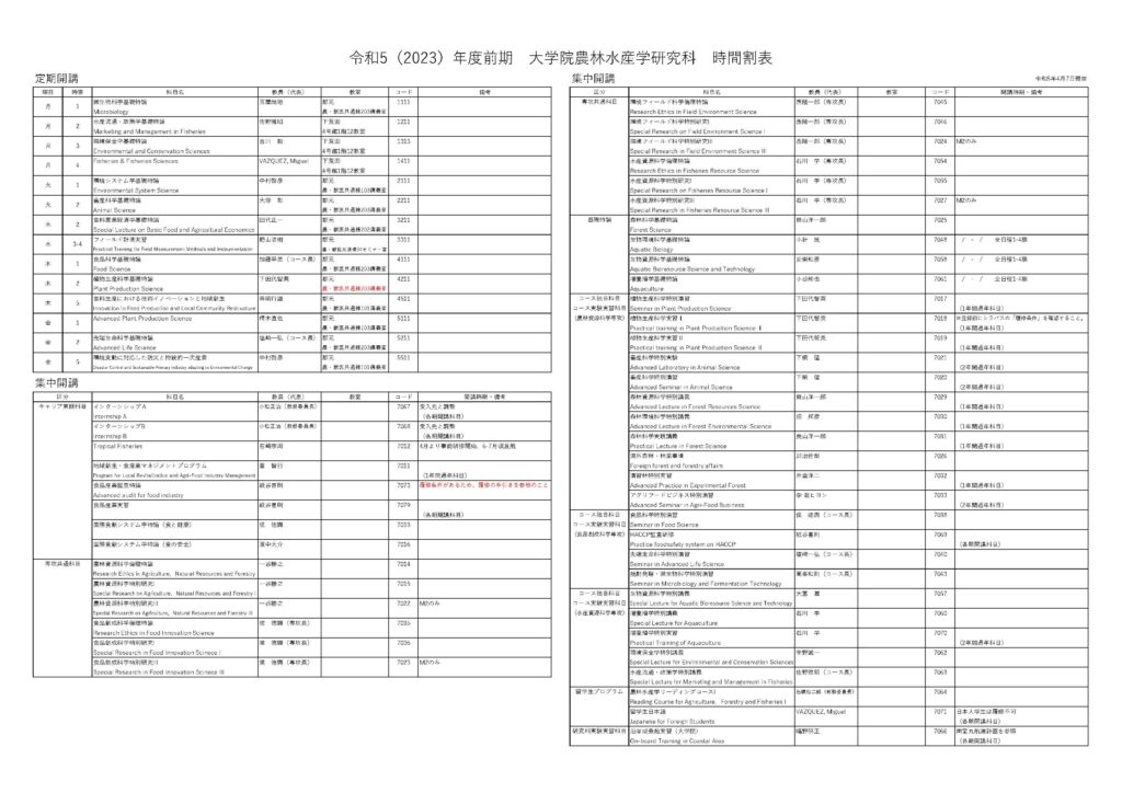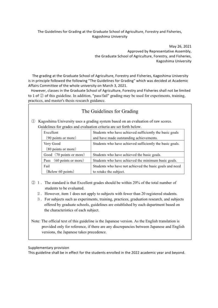 The Guidelines for Grading at the Graduate School of Agriculture, Forestry and Fisheries, Kagoshima University [update:2021/11/12]