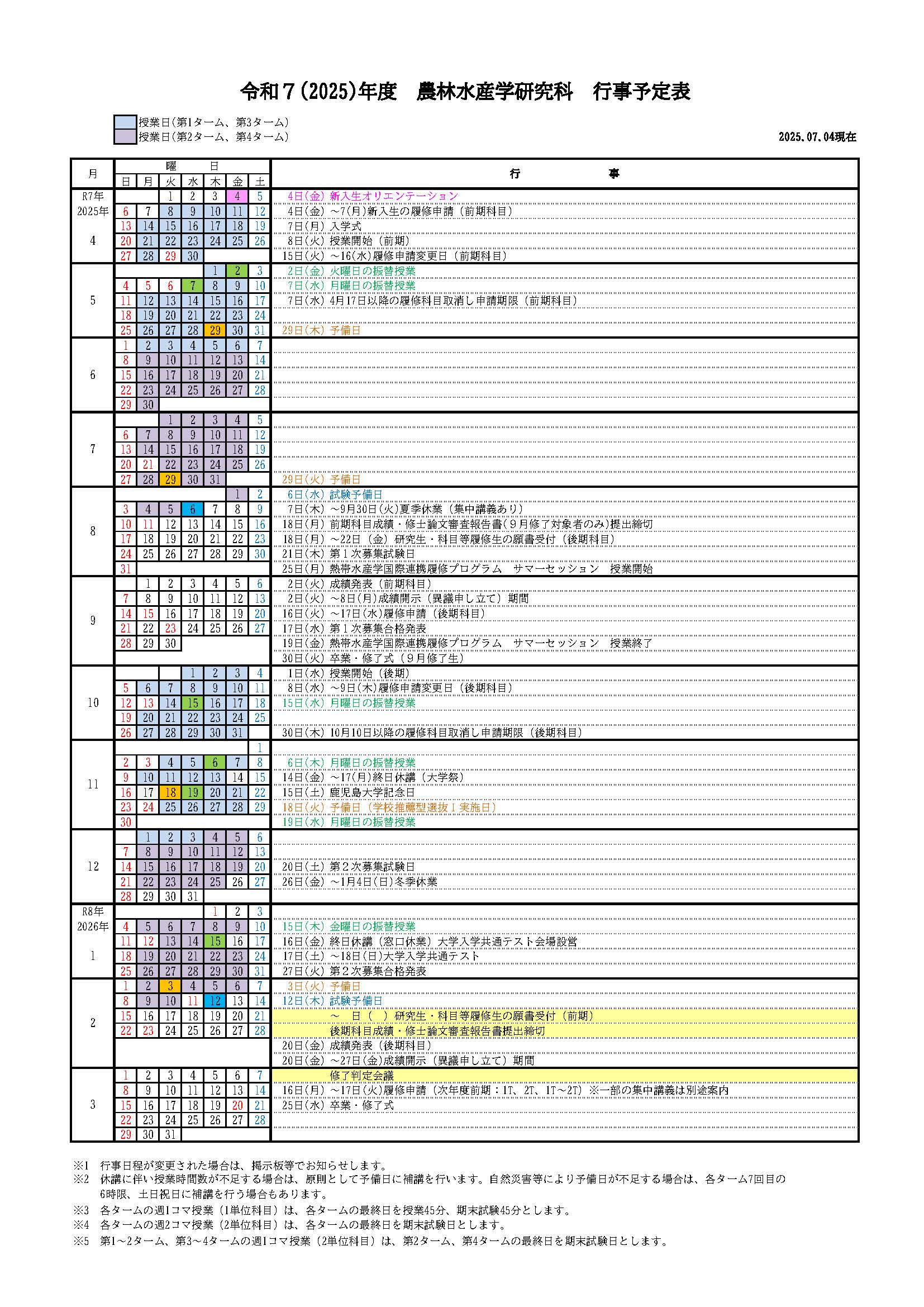 令和7年度 行事予定表 [更新日:2025/07/04(最新版)]