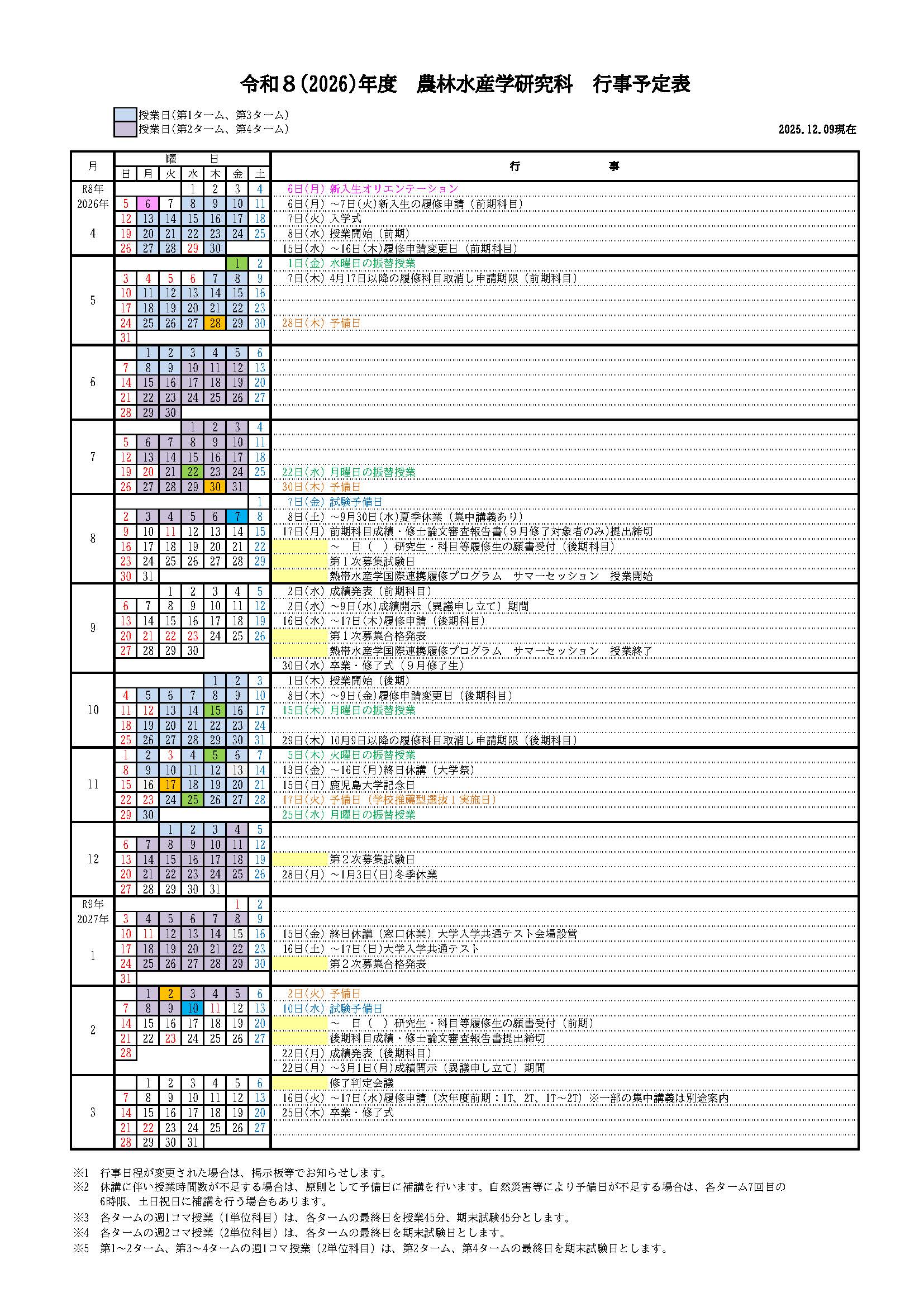 2025年度 行事予定表 [更新日:2025/12/15(最新版)]