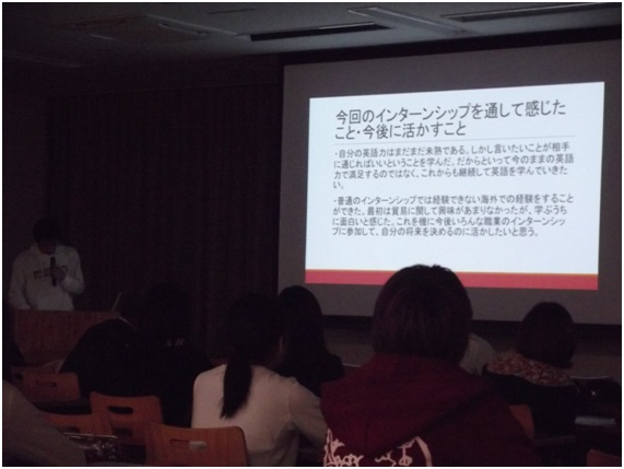 NEWS2022.12.072015.10.28 香港インターンシップ報告会 先生方からも質問や意見をいただき活発な総合討論になりました。 学生の発表の様子です。 コース長の松岡先生から、概要についてお話がありました。 前田学長が香港のインターンシップ実施の経緯をお話されました。