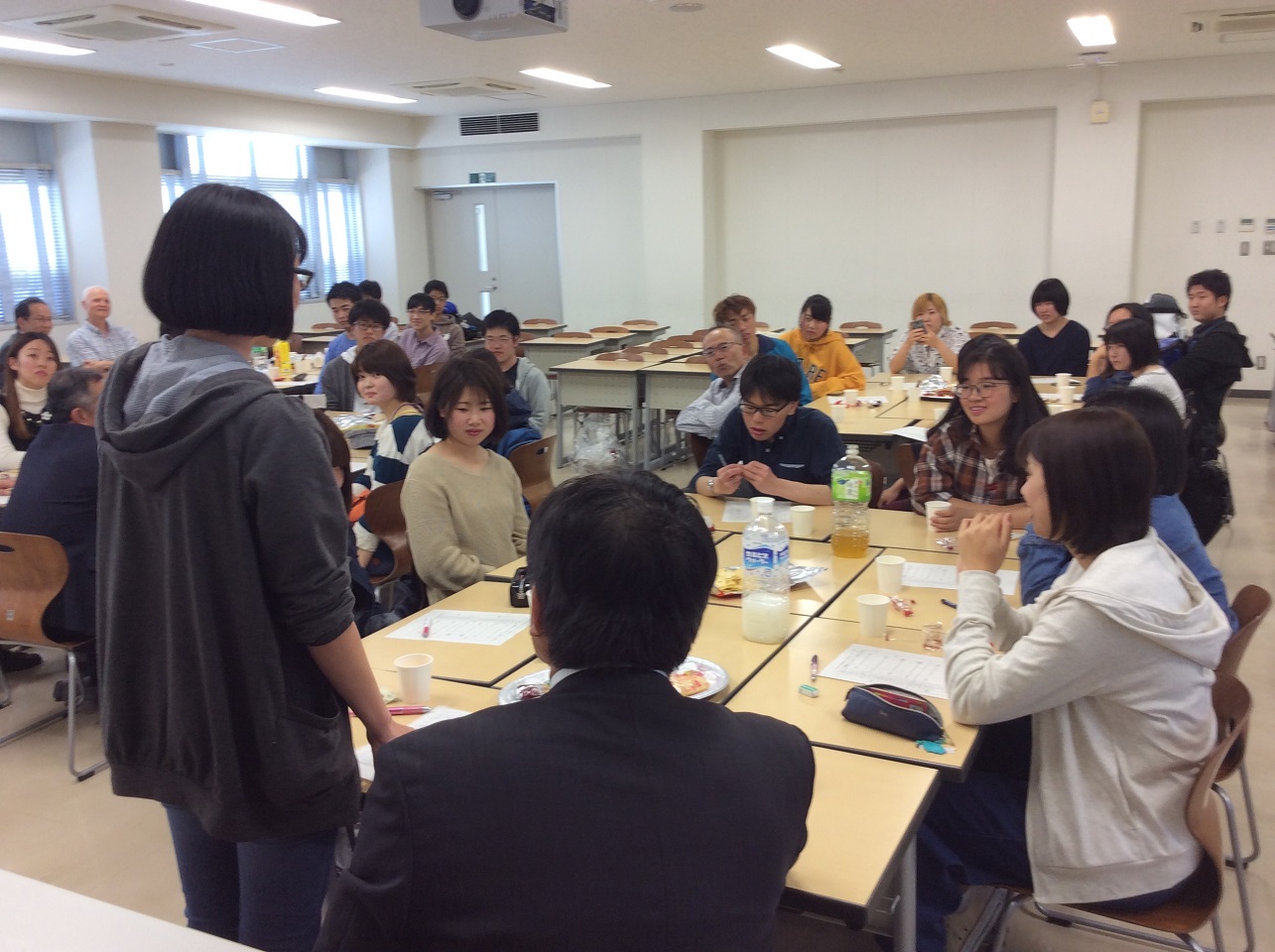 NEWS2022.12.142018.04.10 Tea Party 2018 1年生・上級生・教職員みんなで楽しい時間を過ごせました! 代表者がグループメンバーの紹介をしました グループに分かれて歓談 岩井コース長からの閉会の挨拶