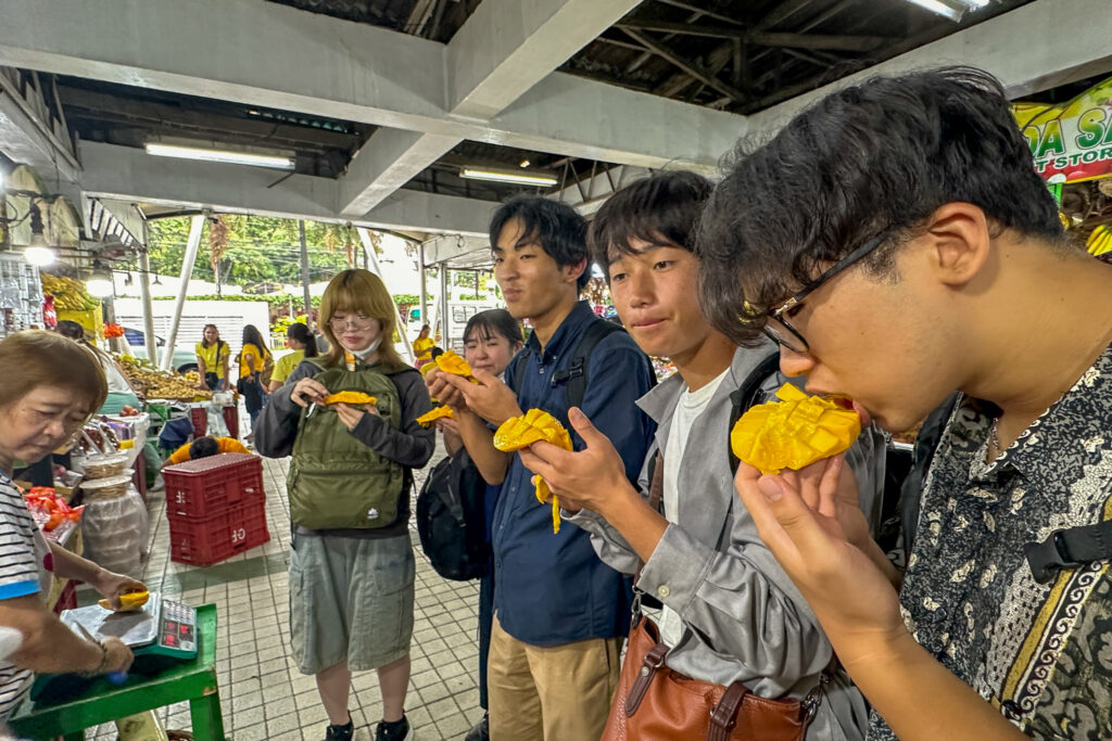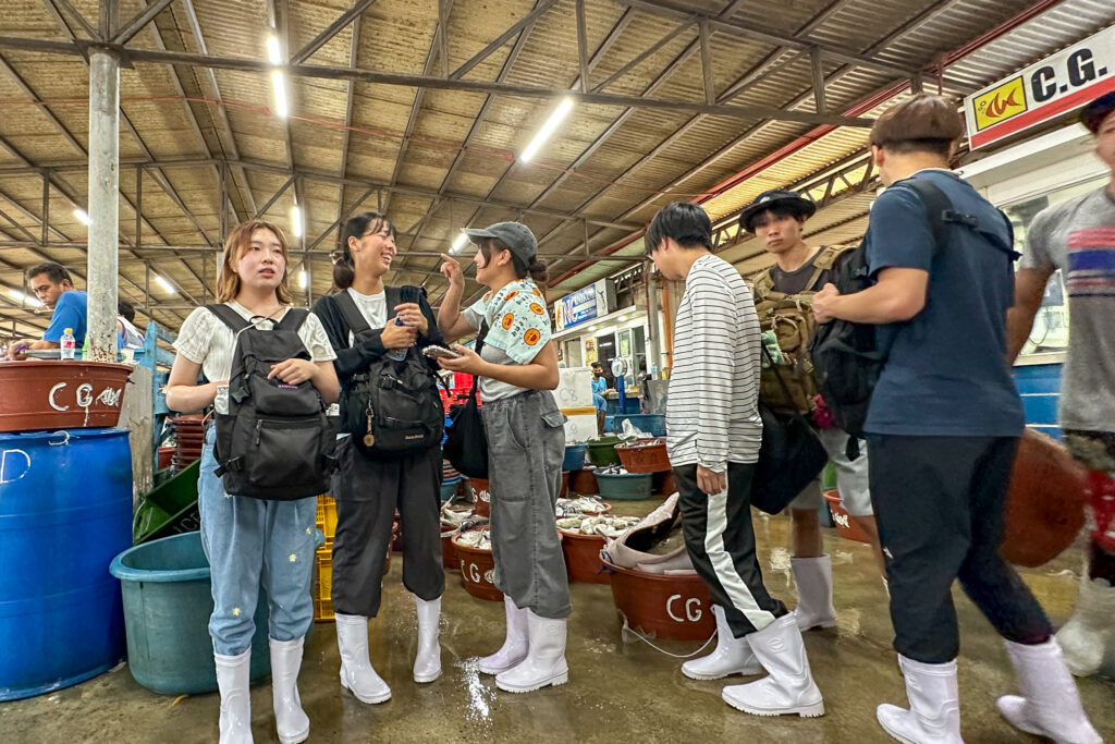 海外渡航の基礎、フィリピンの農水産業、フィリピンでの国際協力事業の概要を学習し、フィリピン大学ヴィサヤス校の協力によるコミュニケーション能力強化の研修をオンラインで行いました。また、希望者を対象として実際にフィリピンに渡航し、マニラ首都圏を含む公設市場や歴史的施設の訪問、また地域の人々との交流を通して、途上国に位置付けられるフィリピンについての理解を深めました。参加学生はそれぞれの活動テーマを設定し、自主活動の時間を活用して得た知見をとりまとめて発表し、ランゲージプログラムのスタッフからはプレゼンテーション手法についても修得する機会を得ました。フィリピンでは、上述の公設市場の他、SEAFDEC-AQD、プランテーション農場、博物館、および教会等の文化施設を視察し、12日間の日程を無事終えて帰国しました。