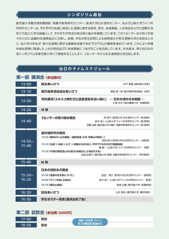 参加費:第一部 講演会(無料) 第二部 試飲会(3,000円)