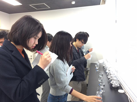年生が焼酎学コースに配属になって、はじめての利き酒のトレーニングです。