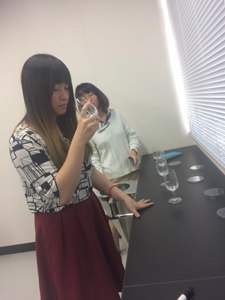 学生実験で造った芋焼酎の研究室内鑑評会です。