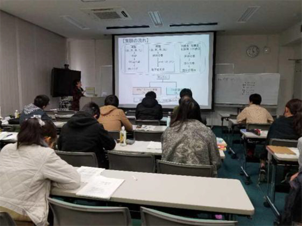 焼酎学センターの教員が話をするのはもちろんですが、鹿児島県工業技術センターからや、焼酎メーカーからも最新の研究をご講演いただきました。どちらも素晴らしい研究で勉強になることばかり。 また休憩時間を活用して行ったポスター発表も写真のように大好評でした。学生や工業技術センターの若手研究者、県内外の焼酎メーカーの研究員や、デザイナーの先生の発表もあり、盛りだくさんでした。